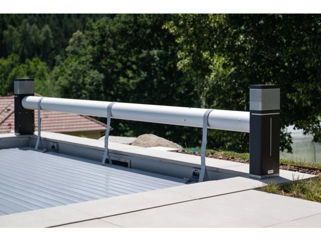 Elektrická varianta řízená dálkovým ovládáním Wi-key nebo aplikací LivePool přímo z Vašeho mobilu nebo solární varianta s klíčovým spínačem umístěným ve stojně rolety.