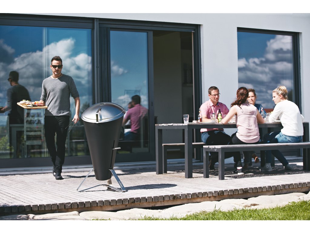 Zahradní gril Cone je unikátním grilem na dřevěné uhlí, který se postará o přípravu toho nejchutnějšího jídla. Pokrmy můžete připravovat na velké grilovací mřížce o průměru 46 cm, nebo na půlené mřížce o průměru 50 cm, která je více vzdálena žáru a je tak vhodná například ke grilování zeleniny nebo ovoce. Po vyndání grilovacích mřížek, je možné gril použít jako ohniště a při chladných večerech si užívat dokonalou atmosféru u plápolajícího ohně.